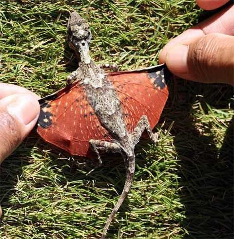 Thực ra đây là loài thằn lằn đặc hữu của Đông Nam Á, cùng chi thằn lằn trượt Draco. Cánh của loài này được sử dụng để trượt hoặc lượn từ cành này sang cành khác, với cự ly lên đến 8 mét.