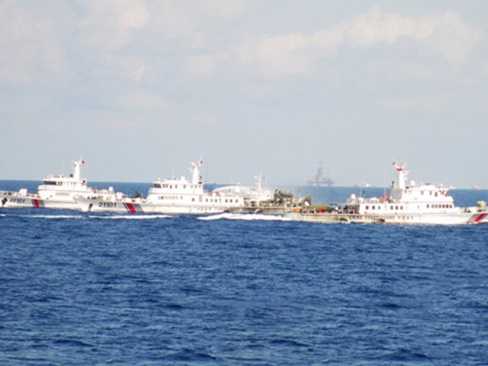 | Trung Quốc huy động rất nhiều tàu lớn với chiến thuật dàn hàng ngang để bảo vệ việc hạ đặt trái phép giàn khoan HD- 981 trên vùng biển của Việt Nam |