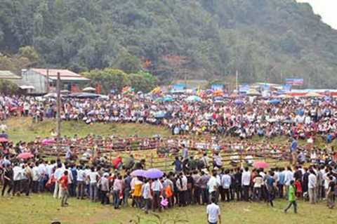 | Hội chọi dê Hàm Yên thu hút hàng ngàn du khách đến tham dự |