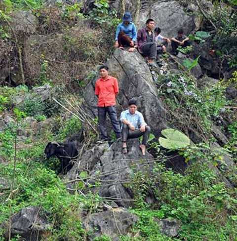 | Trong lúc chờ đợi đến lượt, chủ dê đưa dê nhà mình ra vách núi gần đó nghỉ ngơi |