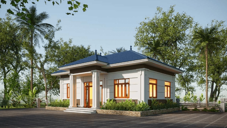 Biệt thự 1 tầng 3 phòng ngủ thiết kế kiểu mái Nhật hiện đại. Phần mái có độ dốc vừa phải đảm bảo thoát nước tốt, phù hợp với điều kiện khí hậu Việt Nam. (Ảnh: NoithatViet)