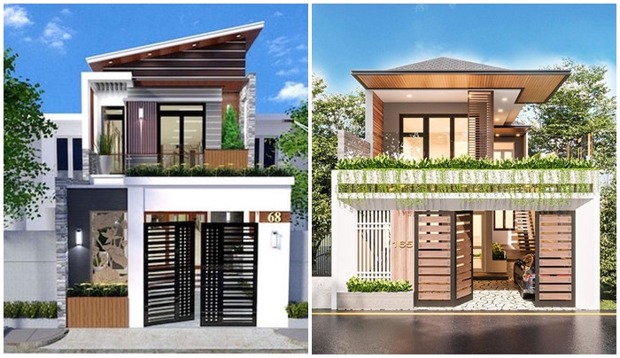 Nhà 2 tầng mái lệch