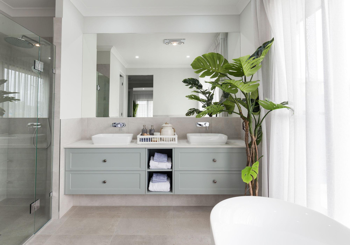Bạn có thể trang trí nhà tắm bằng một số chậu cây nhỏ, không chỉ để tạo điểm nhấn mỹ thuật mà còn giúp làm sạch không khí.