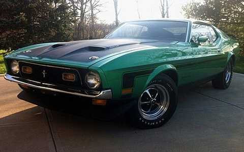 | 1971 Ford Boss Mustang 351 sử dụng động cơ V8, sản sinh 330 mã lực. Khả năng tăng tốc từ 0-100km/giờ trong vòng 5,8 giây |