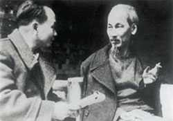 | Chủ tịch Hồ Chí Minh và Tổng Bí thư Trường Chinh trao đổi về những văn kiện Đại hội đại biểu toàn quốc lần thứ II của Đảng (ảnh: Vietnamplus) |