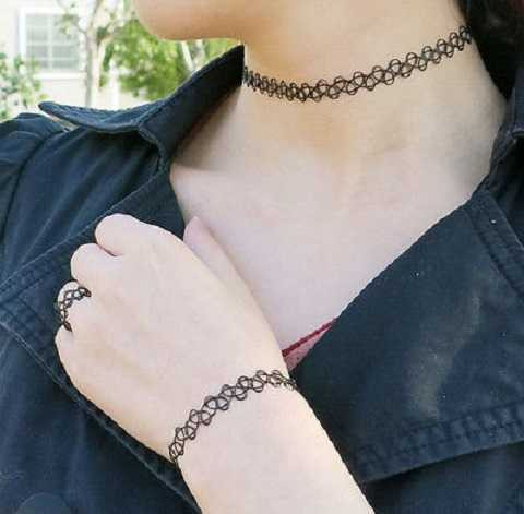 | Kiểu vòng tattoo choker rất phổ biến trong những năm 1980 và 1990 do ảnh hưởng của trào lưu Gothic Punk. |