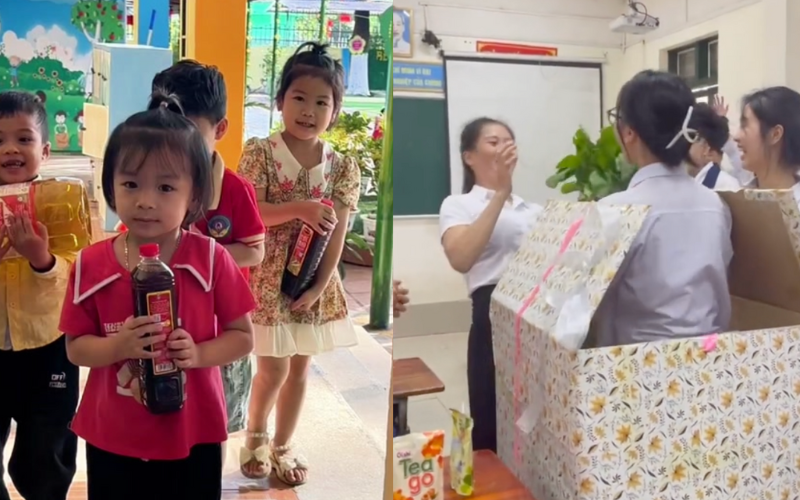 Học sinh trong lớp tặng quà cho cô giáo trong ngày 20/11 khiến ai cũng bật cười. (Nguồn: Chu Hồng Kim)