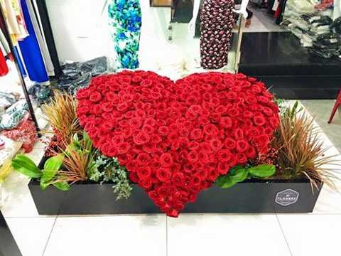 | Bó hoa trị giá hàng trăm triệu được Ngọc Trinh đặt ở cửa hàng thời trang của cô. |