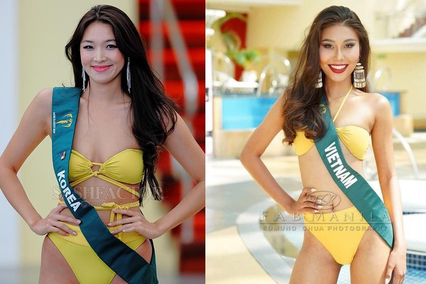 Thạch Thu Thảo và thí sinh Hàn Quốc tại Miss Earth 2022. |