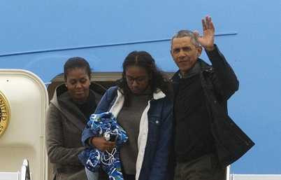 Ông Obama, phu nhân Michelle cùng 2 cô con gái Sasha và Malia rời Hawaii lúc 22 giờ ngày 1/1 (giờ địa phương) và hạ cánh tại căn cứ không quân Andrews, bang Maryland vào ngày hôm sau. Trong khi Malia mặc một chiếc áo khoác màu đỏ, Sasha giữ ấm cơ thể bằng một chiếc áo khoác lót lông cừu và đi giày cao tới đầu gối. Theo sau là vợ chồng Tổng thống Obama, mặc đồ đen và xám.