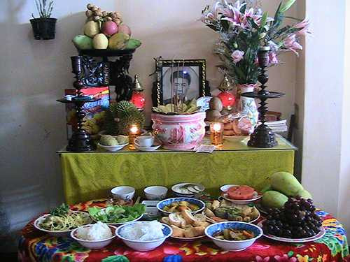 Thường mẹ tôi không muốn chúng tôi mời bạn bè người quen, người thân ở cơ quan hay hàng xóm tới dự đám giỗ. Theo mẹ, ngày giỗ là ngày tưởng nhớ người đã khuất. Nó chỉ có ý nghĩa với người trong gia đình. Mời người ngoài vào sẽ làm loãng không khí tưởng niệm. Ngày giỗ không phải là ngày yến tiệc. Muốn mời bạn bè các con mời vào dịp khác. Bởi vậy mà những ngày giỗ, chúng tôi có nguyên không khí trang nghiêm mà thân thương của gia đình. Cỗ cúng chúng tôi cũng không chỉ có những món nấu nướng bài bản như thông thường. Chẳng hạn cúng bà tôi thường có thêm món chè xanh om thật đặc và đĩa trầu vì đó là hai “món ruột” hồi bà còn sống. Cúng ông tôi có thêm đĩa thuốc lào và nhất thiết có đĩa lạc rang. Còn cúng cha tôi thì có đĩa lòng luộc. Mẹ tôi nói người chết ăn hương ăn hoa, nghĩa là hương hoa của những món quen thuộc. Đừng cầu kì vô lí khi cúng những món sang trọng đắt tiền nhưng ông bà chưa hề biết đến. Còn tôi nghĩ rằng nhớ về người đã khuất nghĩa là nhớ tất cả thói quen của người ấy. Chỉ người trong gia đình, chỉ người ruột thịt mới có cái nhớ sâu sắc như vậy