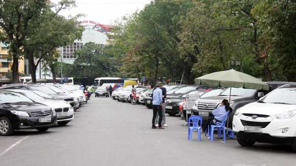 | Một điểm trông giữ ô tô, xe máy tại khu vực Hồ Hoàn Kiếm |