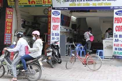 Tại mỗi cổng trường học như đại học Bách Khoa, đại học Hà Nội... các hàng photocopy, scan in phun màu mọc lên san sát nhau. Giá 2 bản photo là 1.000 đồng, giá 1 bản in là 1.000 đồng nhưng hầu như rất ít người vào quán chỉ in hoặc photo từ 1 - 2 tờ.