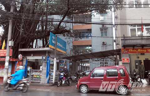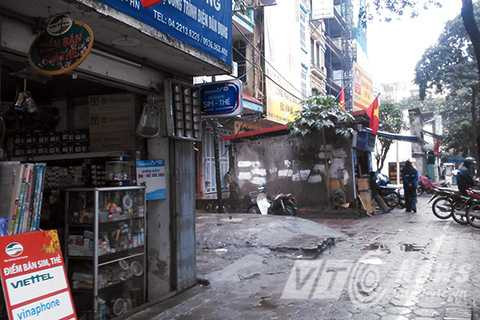 | Một ngôi nhà nghiễm nhiên tồn tại trên vỉa hè ở đường Nguyễn Phong Sắc, chiếm mất một phần mặt tiền của quán cà phê. |