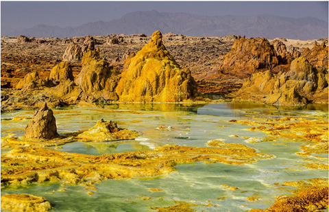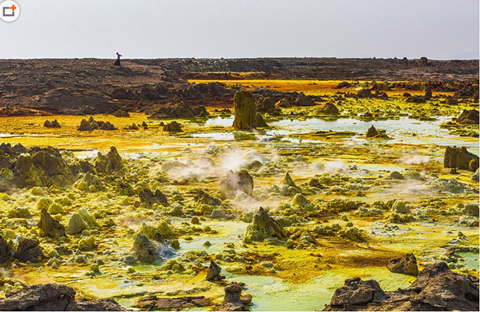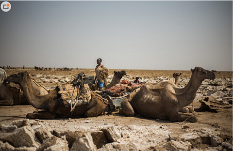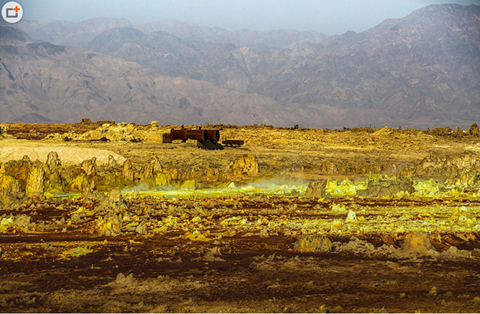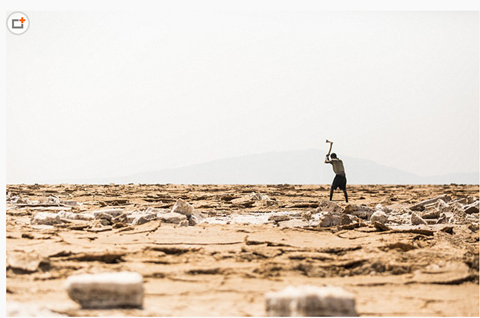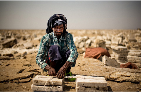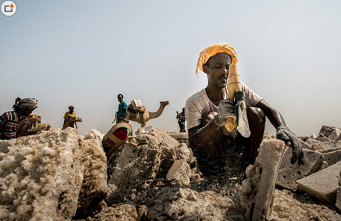 Danakil Depression ở Ethiopia là nơi có nhiều quặng lưu huỳnh, muối mỏ và đá đỏ. Chính vì vậy nhiều người tìm tới đây để khai thác muối nhằm để bán kiếm tiền.