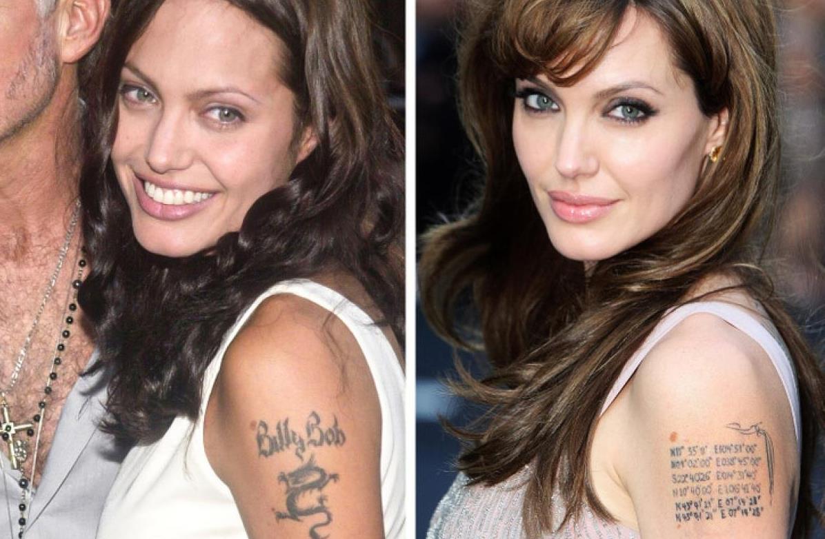 Quay trở lại đầu những năm 2000, khi Angelina Jolie và chồng cũ Billy Bob Thornton từng bên nhau, cô đã dành riêng một hình xăm cho anh ấy như một dấu hiệu cho tình yêu của mình. Hình xăm trên vai trái của nữ diễn viên mô tả một con rồng kiểu châu Á với tên “Billy Bob” được xăm phía trên. Tuy nhiên, sau khi cuộc hôn nhân của cặp đôi kết thúc vào năm 2003, Jolie đã xóa hình xăm và sau đó nó được che bằng tọa độ nơi các con của cô được sinh ra.