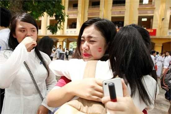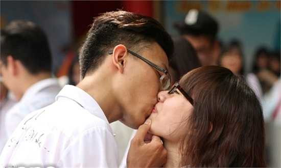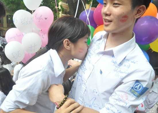 Các bạn học sinh cuối cấp không giấu được những giọt nước mắt, trao nhau những cái ôm thật chặt và cả những nụ hôn thắm thiết.