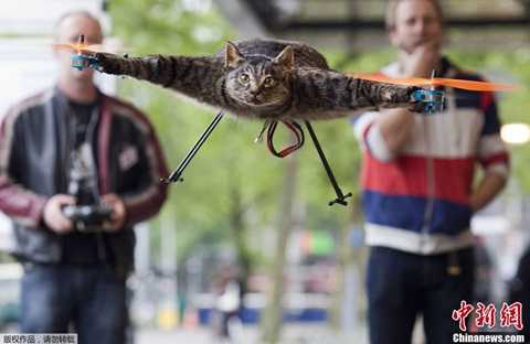 Ngày 5/6, nghệ thuật gia ở Amsterdam, Hà Lan chế tạo chiếc trực thăng từ xác con mèo yêu quý đã chết trong vụ tai nạn xe