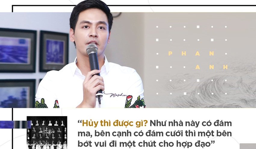 Khi Hoa hậu Hoàn vũ 2017 gặp tranh cãi vì tổ chức trong tâm bão, Phan Anh nhận những phản hồi trái chiều khi lên tiếng trên trang cá nhân. “Khán giả đến xem đông, tỷ lệ theo dõi trên truyền hình cao và livestream nghẽn mạng. Nhà hát không bị ảnh hưởng của bão, công tác tổ chức có thể đảm bảo, không ảnh hưởng gì tới công tác hỗ trợ thiệt hại sau bão của địa phương. Vậy thì tất cả phải ngồi im chờ đợi ư?", anh viết.