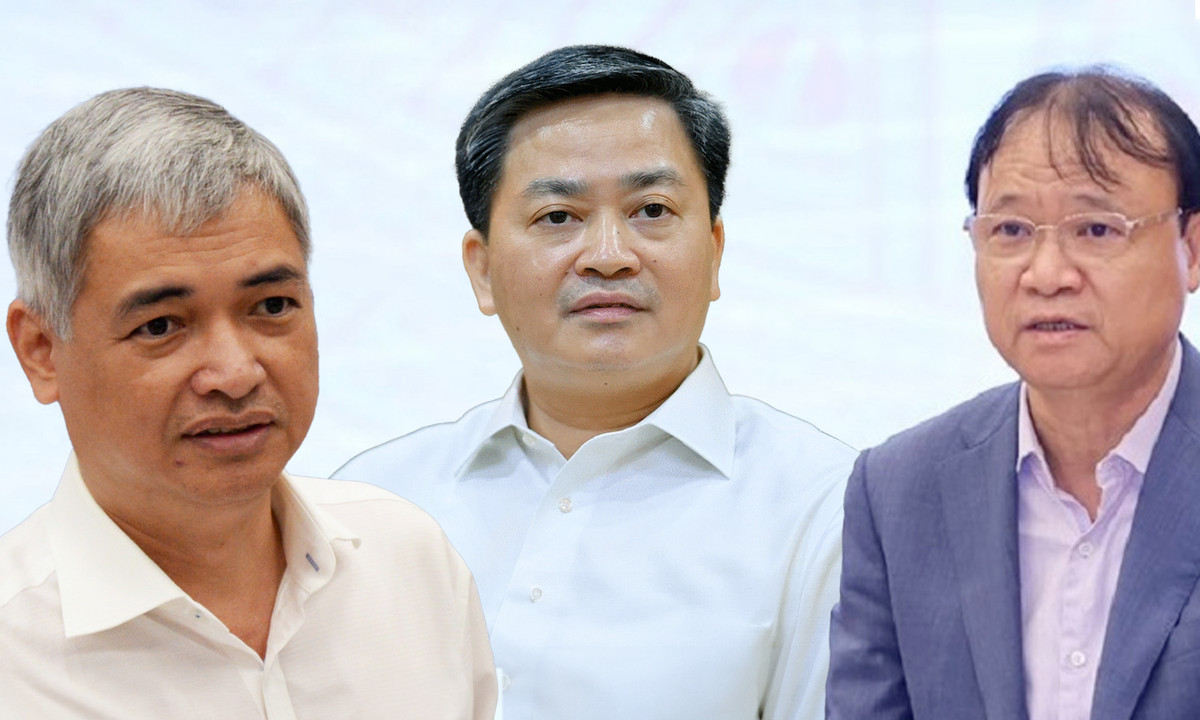 Các bị can (từ trái qua phải): Lê Duy Minh, Lê Đức Thọ, Đỗ Thắng Hải.