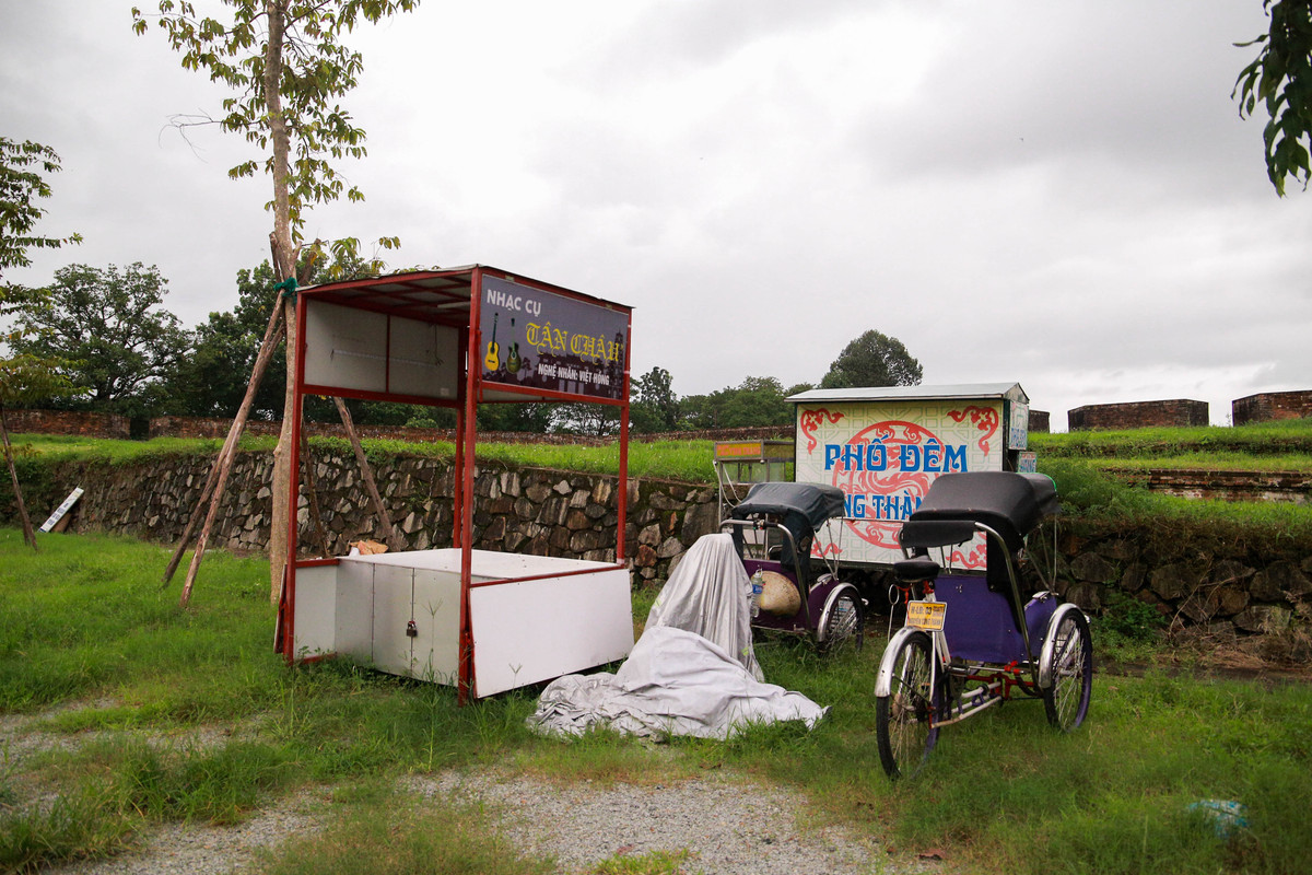 Dãy quầy bán hàng di động bỏ không nằm ngay đối diện cửa Chương Đức - Đại nội Huế. Đây là một trong bốn cửa ra vào của Hoàng thành Huế. Thời nhà Nguyễn, cửa này để dành riêng cho các bà hoàng và cung nữ ra vào.