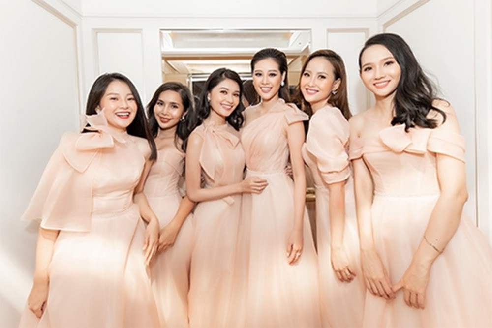 Đám cưới của Á hậu Thúy Vân cũng khiến khán giả xuýt xoa vì phù dâu quá xinh. Có thể kể đến những tên tuổi nổi bật như Hoa hậu Khánh Vân, Á hậu Thùy Dung, diễn viên Tam Triều Dâng, người mẫu Kim Ngân...