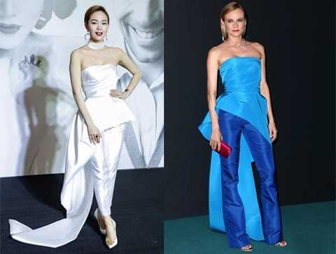 Không chỉ sao chép về trang phục, trang điểm mà ngay cả phụ kiện vòng đeo tay, clutch, nhẫn, hoa tai... Không chỉ sao chép phong cách của Phạm Băng Băng, Angela Phương Trinh cũng "mượn" trang phục của Jennifer Lopez, Song Hye Kyo thậm chí Grace Kelly và nhiều thương hiệu thời trang nổi tiếng khác như Balenciaga, Elie Sabb...
