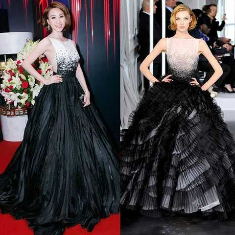 Tuy nhiên, các tín đồ thời trang nhanh chóng phát hiện ra bộ trang phục của Ngân Khánh tương đồng đáng ngạc nhiên với váy dạ hội nằm trong bộ sưu tập Haute Xuân 2012 của thương hiệu Christian Dior.