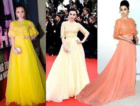 Nhưng chiếc đầm của Angela Phương Trinh là sự copy nguyên bản từ hai bộ đầm hàng hiệu mà Phạm Băng Băng từng diện trên thảm đỏ Liên hoan phim Cannes 2013 và một hoạt động từ thiện tại Mỹ hồi tháng 3