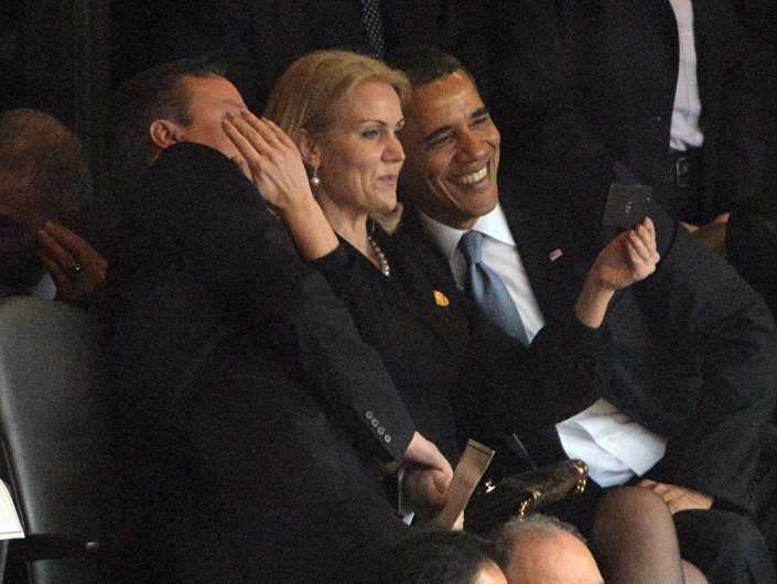 Một ông chủ Nhà Trắng cũng nằm trong những cái tên bị dư luận chỉ trích về hành động của mình là Tổng thống đương nhiệm Barack Obama. Trong đám tang của nhà lãnh đạo Nelson Mandela, ông cùng Thủ tướng Anh David Cameron và Thủ tướng Đan Mạch Helle Thorning Schmidt đã khiến dư luận dậy sóng sau khi bị bắt gặp tươi cười, thích thú chụp ảnh tự sướng thay vì tỏ ra trầm mặc tiếc thương cho sự ra đi của vị lãnh tụ vĩ đại của Nam Phi.