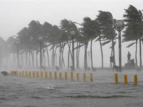| Bầu trời trắng xóa khi bão Haiyan đổ bộ Philippines ngày 8/11 |