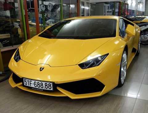 | Nổi bật với màu vàng đặc trưng của Lamborghini và biển số tứ quý 8, đây là chiếc siêu xe Lamborghini Huracan thứ 3 về tới Việt Nam trong năm 2015, sau chiếc màu xám chính hãng và màu xanh lá của đại gia Phan Thành tặng sinh nhật em trai. |
