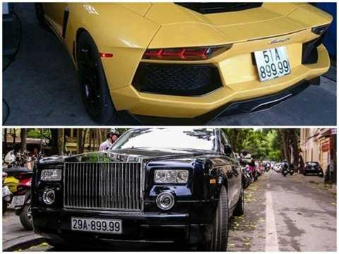 | Hai mẫu xe siêu sang Lamborghini Aventador và chiếc Rolls-Royce Phantom đều trị giá tới 26 tỷ đồng và có trùng biển số với những số cuối rất đẹp 8.9999. Siêu xe Lamborghini Aventador LP700-4 màu vàng là chiếc Aventador đầu tiên về Việt Nam, hồi tháng 6/2012. Ở Việt Nam hiện có hai chiếc Aventador đều thuộc sở hữu của đại gia sống ở Sài Gòn. |