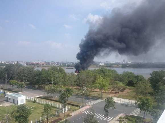 Hiện trường tàu cánh ngầm bốc cháy vào chiều 20/1Khi lưu thông đến đoạn gần cầu Phú Mỹ (thuộc lưu vực sông Sài Gòn, quận 7, TP.HCM) thì bất ngờ xảy ra cháy. Phát hiện sự việc, tài công đã chủ động cho tàu chạy sát bờ sông Sài Gòn, cặp mé khu công nghiệp Tân Thuận, Q.7.