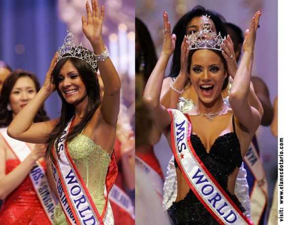 | Tại cuộc thi Mrs World 2006, sự nhầm lẫn từ ban tổ chức khiến người đẹp đăng quang "chết đứng" trước ống kính. Mặc dù MC chương trình công bố danh hiệu hoa hậu thuộc về người đẹp Nga nhưng Hoa hậu trao vương miện tiền nhiệm lại tiến thẳng về phía người đẹp Costa Rica và đội vương miện cho cô. “Hoa hậu bị trao nhầm” vỡ òa hạnh phúc và có màn catwalk chào khán giả trong sự khó hiểu của hoa hậu thật sự. Biểu cảm của người đẹp Nga (trái) khi chứng kiến cảnh trao vương miện nhầm (phải). |