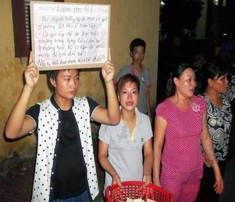 Cô bé bán khoai (đứng giữa) và những người 'buôn thúng bán mẹt' đã đi xin để cứu mẹ con Hà Thị Ngân