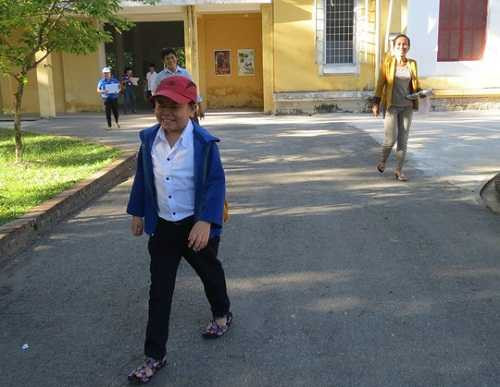 Thí sinh Nguyễn Ngọc Tường Vi khiến không ít người ngạc nhiên khi tham dự kỳ thi THPT Quốc gia 2015 tại điểm thi Trường ĐH Khoa học Huế với chiều cao khiêm tốn - 1 mét.