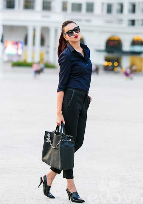 An toàn nhất là bạn có thể học theo Hồ Ngọc Hà, kết hợp áo sơ-mi theo tông màu trắng đen vừa trọng mà vừa không bao giờ lỗi mốt.