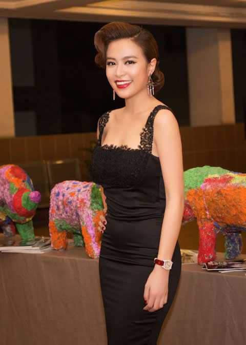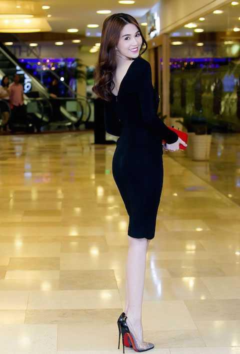 | Chiếc đầm đen eo ót tôn lên nước da trắng ngần của Ngọc Trinh. |