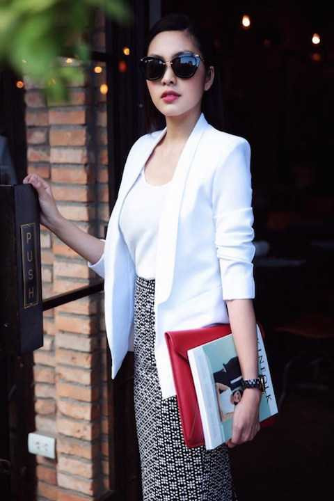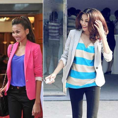 | Thanh Hằng là một trong những tín đồ của loại trang phục này. Cô sở hữu khá nhiều kiểu dáng áo blazer từ mẫu cổ điển đến dáng dài, cách điệu, hiện đại. |