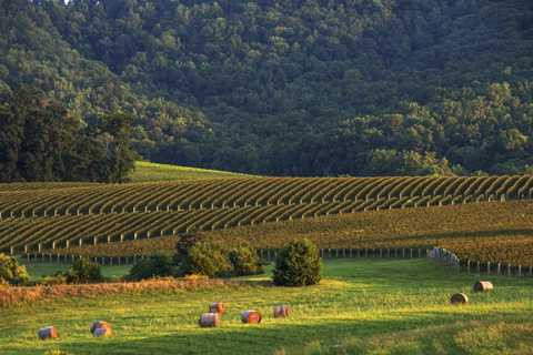 | Thung lũng Monticello Wine Trail, bang Virginia: Những con đường mòn đất màu nâu đỏ, những cánh đồng nho tim tím là những điểm cuốn hút du khách đến với thung lũng Monticello Wine Trail. |