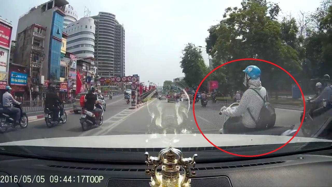 Người phụ nữ mặc đồ chống nắng kín mít phóng xe máy SH lướt qua khiến người phụ nữ đi xe Lead phanh gấp, ngã đổ xuống đường. Vụ việc xảy ra tại ngã tư Nguyễn Sơn - Nguyễn Văn Cừ, Hà Nội sáng 21/11/2016. Sau khi vô tình gây tai nạn, người phụ nữ đi SH thản nhiên phóng xe đi tiếp như chưa có chuyện gì xảy ra.