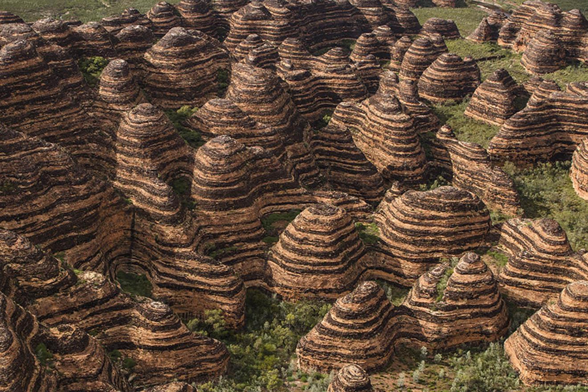 Hàng ngàn mái vòm sọc cam và đen khổng lồ tạo nên cảnh quan ngoạn mục ấn tượng của dãy Bungle Bungle.