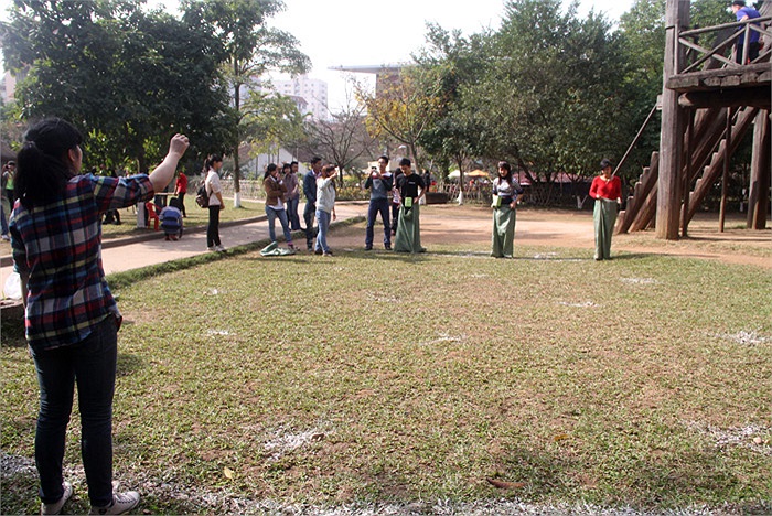 Nhảy bao bố không chỉ đòi hỏi người chơi sự nhanh nhẹn mà cả sự khéo léo