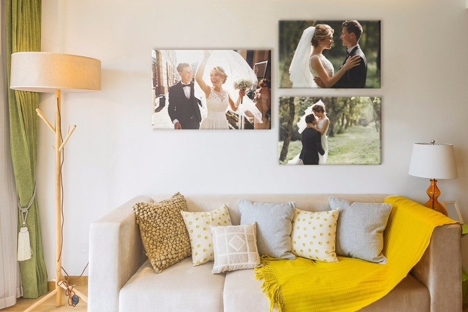 Phòng khách rất thích hợp để trưng bày ảnh cưới.