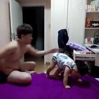 Video: Ông bố bắt bé con tập thể dục“bá đạo”