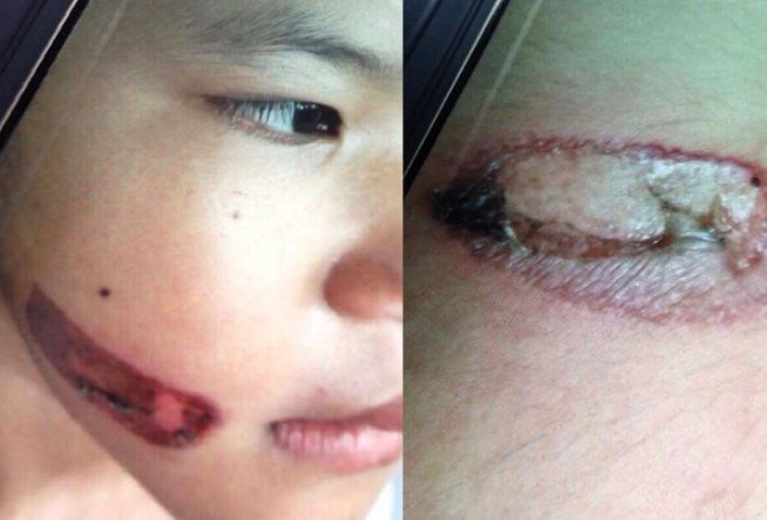 Vết thương trên mặt bé Thảo.