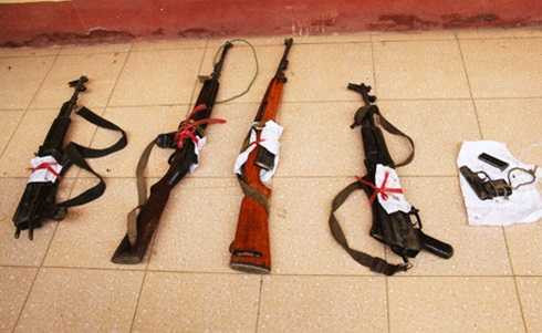 Tại hiện trường, công an thu giữ sáu ba lô, bên trong chứa 108 bánh heroin tương đương 40kg; 2 khẩu súng AK, 2 khẩu súng Cacbin, 1 súng ngắn, 70 viên đạn các loại và nhiều vỏ đạn AK, cacbin, súng ngắn...
