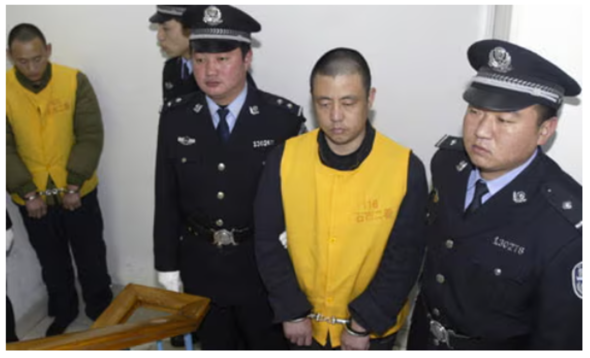 Một trong hai người (áo vàng) bị tuyên tử hình vì sữa chứa chất độc. (Ảnh:China Daily)