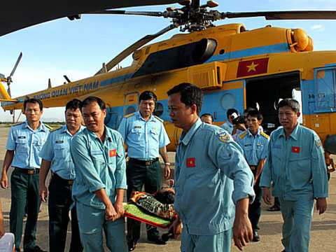 Anh Trực được trực thăng đưa vào đất liền cấp cứu. Ảnh: Thanh niên |
